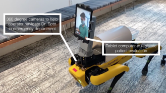 The researchers then tested one of their robots in the emergency department at Brigham and Women’s Hospital last spring, when Covid-19 cases were surging in Massachusetts. Fifty-one patients were approached in the waiting room or a triage tent and asked if they would be willing to participate in the study, and 41 agreed. These patients were interviewed about their symptoms via video connection, using an iPad carried by a quadruped, dog-like robot developed by Boston Dynamics. More than 90 percent of the participants reported that they were satisfied with the robotic system.